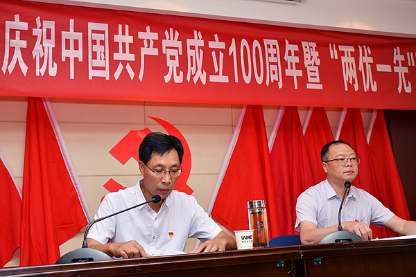 2021年6月28日上午,二一四大隊有限公司在城固基地隆重舉行召開慶祝中國共產黨成立100周年暨“兩優一先”表彰大會,公司黨員干部和黨員代表共50人參加了會議,會議由黨委副書記、總經理司金強主持。