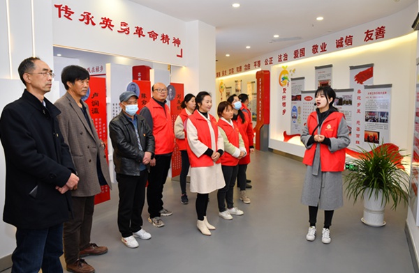 走進城固縣新時代文明實踐中心,映入眼簾的城固縣新時代文明實踐工作組織架構(gòu)圖,該圖詳細展現(xiàn)了專業(yè)志愿服務(wù)隊、鎮(zhèn)辦服務(wù)隊、村(社區(qū))服務(wù)隊、17個鎮(zhèn)辦新時代文明實踐所及全縣10個特色基地的具體分布。讓大家對各志愿服務(wù)隊的職能進行了基本了解,隨后講解員對“十有”標(biāo)準(zhǔn)“七講”活動以及志愿服務(wù)工作流程進行了闡述,讓大家對志愿服務(wù)工作有了更深一步的認識。
