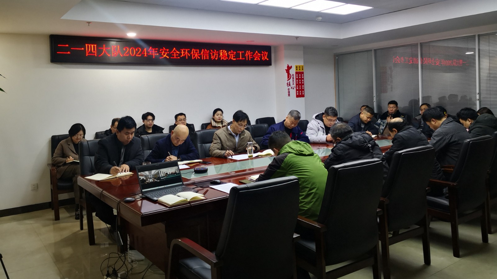 2月5日上午,二一四大隊召開2024年安全環(huán)保信訪穩(wěn)定工作會議,主會場設在九鼎辦公樓四樓會議室,分會場設在城固基地。公司安委會成員、各單位主管安全副院長、項目負責、安全員等35人參加會議,會議由公司黨委書記、董事長、安委會主任鄧盛波主持。