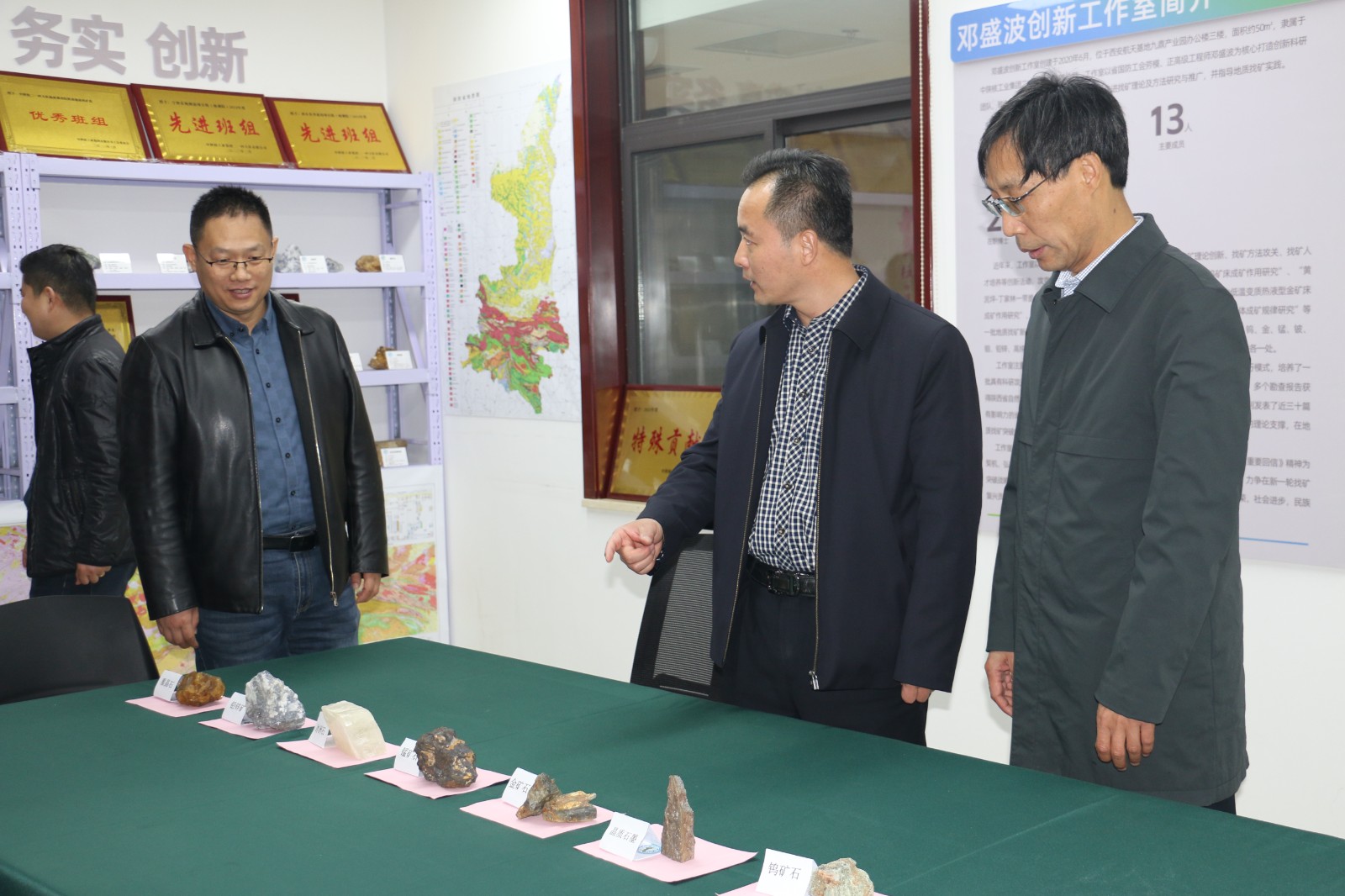 會后,集團公司黨委副書記馮凱一行參觀了公司榮譽展覽室、鄧盛波創新工作室和無人機航空物探創新工作室。