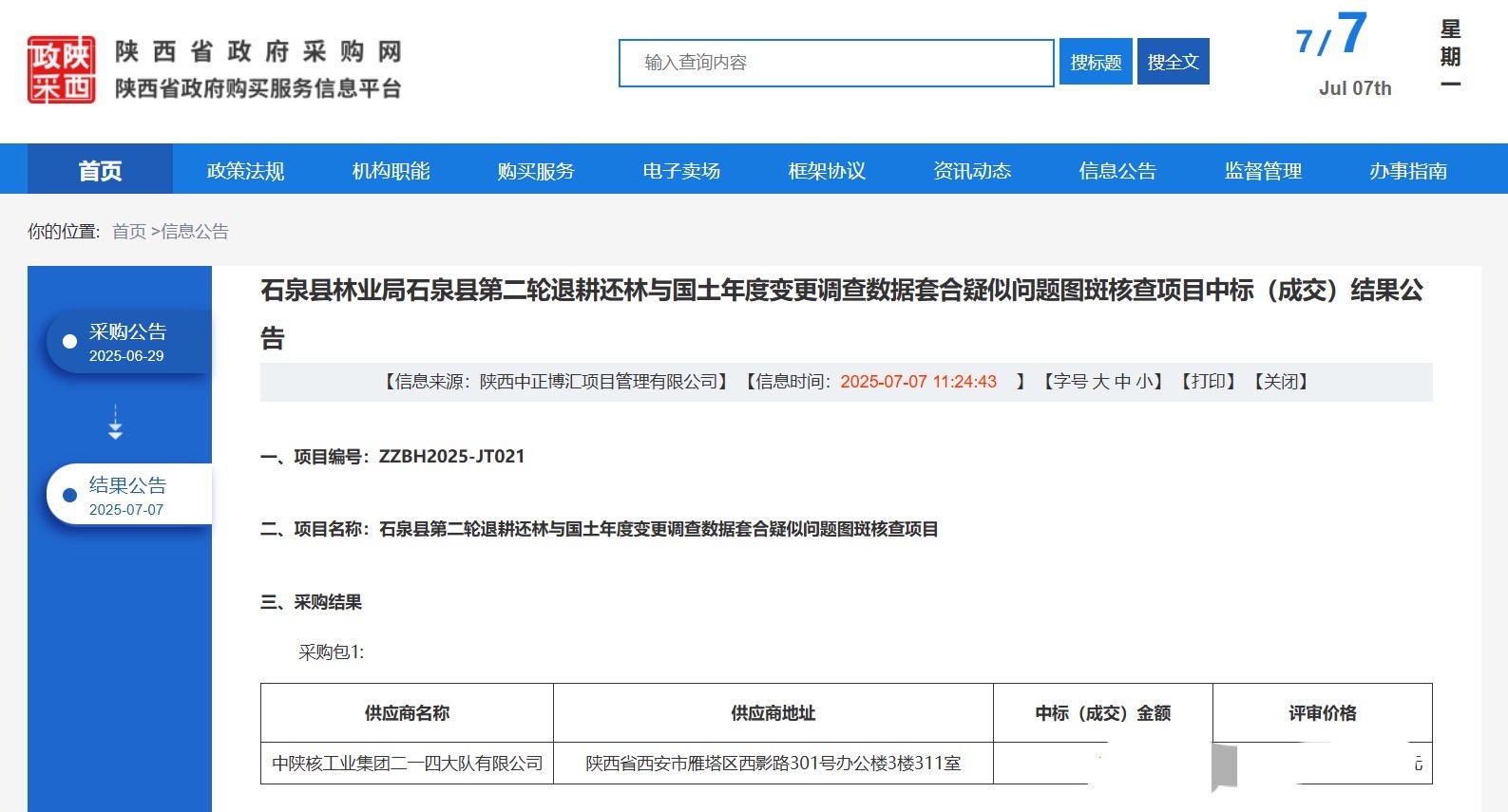近日,公司物化探院成功中標《石泉縣第二輪退耕還林與國土年度變更調(diào)查數(shù)據(jù)套合疑似問題圖斑核查項目》及《石泉縣第二輪退耕還林與國土年度變更調(diào)查數(shù)據(jù)套合疑似問題圖斑無人機航測及正射影像服務項目》。