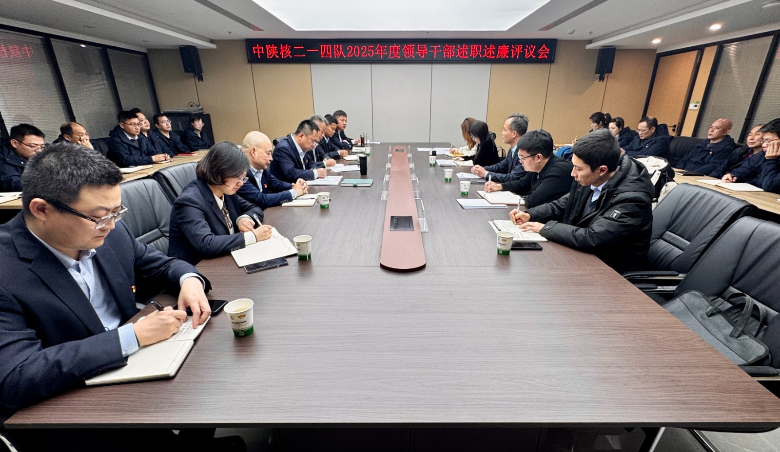 按照中陜核集團黨委統(tǒng)一部署,12月30日下午,中陜核二一四隊召開了2025年度領導干部述職述廉評議會,集團公司黨委副書記馮凱出席會議并講話,會議由集團黨委工作部副部長治蕾主持。集團公司第四考核組成員、公司領導班子成員、中層正職及部分職工代表參加會議。