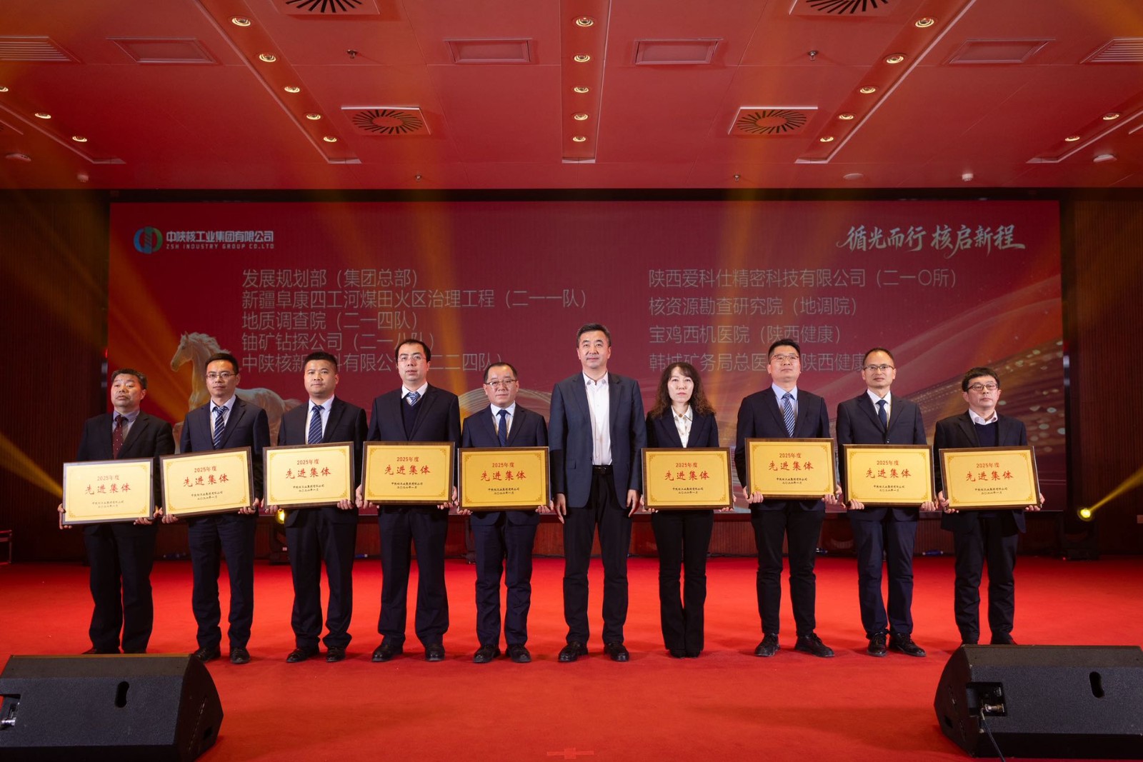 一元復始啟新篇,捷報頻傳鼓干勁。1月20日,中陜核工業集團三屆三次會員(職工)代表大會暨2026年工作會隆重召開,會上對過去一年在集團發展中表現突出的先進集體與個人進行了表彰。中陜核二一四隊憑借扎實的工作成效與亮眼的創新突破,斬獲多項榮譽,盡顯核地質隊伍的硬核實力與奮進姿態。