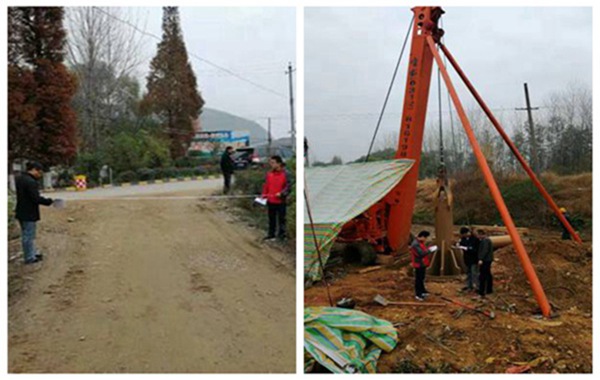 陜西省地熱資源豐富,資源量巨大,淺層地熱能分布范圍廣泛,陜南山間盆地主要以地下水地源熱泵形式開發利用。為加快推進地熱能清潔供熱應用,根據陜西省住建廳《關于發展地熱能供熱的實施意見》精神,水工環調查院積極搶抓市場先機,與陜西中勉投資有限公司就查明九昱漢水溫泉旅游度假區附近地層結構,含水層富水性及回灌能力,為水源熱泵的供水井設計提供依據達成約定,在定軍山鎮郭家灣村開展地層勘查、大口徑試驗井施工及相關水文地質試驗工作。