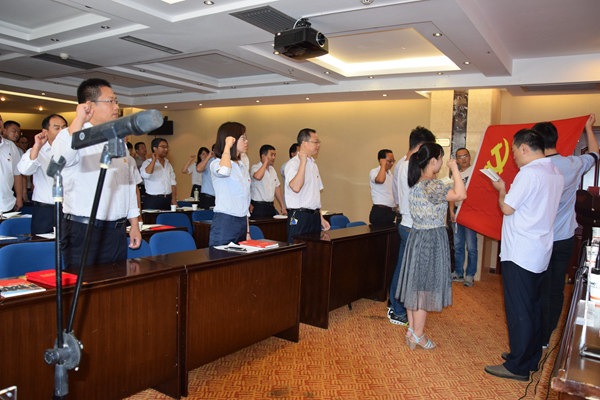 會議莊嚴(yán)舉行了的新黨員入黨宣誓儀式,在黨群工作部長華崢帶領(lǐng)下,新入黨的3位同志和全體黨員高舉右手,新黨員進行入黨宣誓,老黨員重溫入黨誓詞,新黨員代表張宏如做了表態(tài)發(fā)言。