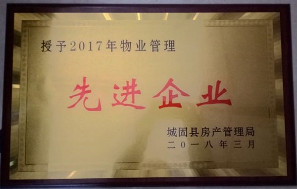 公司物業(yè)管理中心榮獲城固縣“2017年度物業(yè)管理先進企業(yè)”