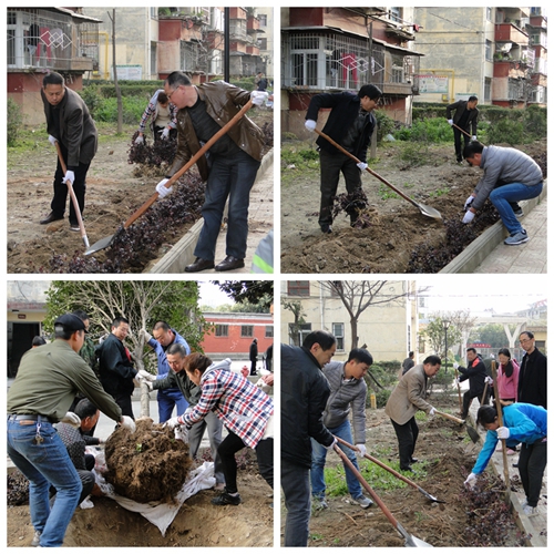 陽(yáng)春三月,春風(fēng)拂面。綠化過(guò)程中,大家歡聲笑語(yǔ),擼起袖子,掄鎬揮掀,挖坑扶苗,填土澆水,分工合作,享受著芳香泥土帶來(lái)的快樂(lè),憧憬著未來(lái)綠色家園的幸福,種植紅花繼木1000株,桂花及金邊黃楊等樹(shù)種20余棵,順利完成當(dāng)天的綠化計(jì)劃。