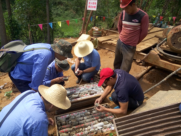 檢查組一行首先到野外鉆探施工現(xiàn)場進(jìn)行了實(shí)地查看,認(rèn)真翻看巖心,查看探槽工程,并對(duì)礦(化)體露頭進(jìn)行追索。回到項(xiàng)目組后,王義忠組織召開項(xiàng)目研討會(huì),針對(duì)目前鉆探施工過程中存在的問題進(jìn)行了深入討論。