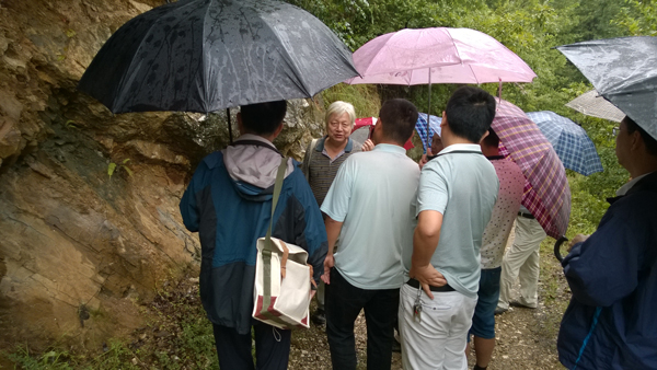 在項目負責和技術負責的帶領下,打著雨傘,實地查看了BT8701和TC1101。在探槽前,檢查組專家們給項目技術人員講解了探槽編錄工作中應注意收集的各種地質要素和工作中應注意的事項。接著到幼兒園溝冒雨看了鉆孔ZK7901、ZK7902、ZK8701、ZK7101、ZK0001的巖心,專家們談了各自對礦體的認識,對鉆孔巖心的編錄中應注意收集的各種地質要素和工作中應注意的事項進行了講解,解釋了項目技術人員提出的問題。