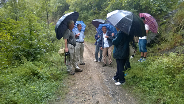 9月10日,檢查組一行冒雨驅車從寧強縣城到陽平關檢查“陜西省寧強縣南沙河地區金礦普查”野外工程質量。