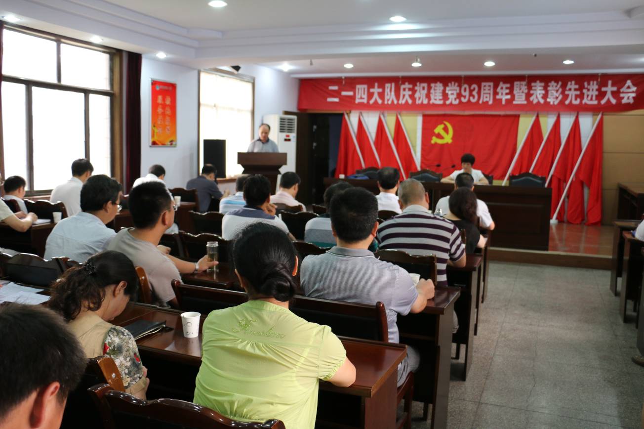 隨著鏗鏘有力的國歌響起,全體黨員肅然起立,在皮紅芳隊長的主持下,慶祝活動開始。黨委書記趙建輝同志致詞,回顧了中國共產黨成立93周年來的光輝里程,對群眾路線教育實踐活動的開展情況進行了簡短總結,同時,對全隊黨員干部提出了三點要求:一要勤于學習,善于思考,努力提升理論修養和知識水平。要求每位黨員干部,要保持良好的學習習慣,做認真學習的表率。通過掌握過硬的業務技能,不斷提高自身科學判斷形勢的能力、應對復雜局面的能力、學法用法的能力和駕馭市場經濟的能力。二是敢于探索,勇于實踐,切實提高執政行政能力。要求全隊黨員干部樹立正確的事業觀,以高度負責的態度和求真務實的精神,沉下心來,研究和規劃好本單位、本部門的工作思路和工作方向;堅持把實現最廣大人民的根本利益作為工作的出發點和落腳點,真正解決職工群眾的實際問題。要把立黨為公、執政為民的本質要求真正落到實處。三是以身作則、嚴于律已,加強和改進作風建設。要求全隊黨員干部認真落實習近平同志的講話精神,身先士卒、率先垂范,以“為民、務實、清廉、高效”的工作作風,干干凈凈做事,秉公用權、不以權謀私,依法用權、不假公濟私,廉潔用權、不貪污腐敗,始終保持共產黨人的政治本色。
