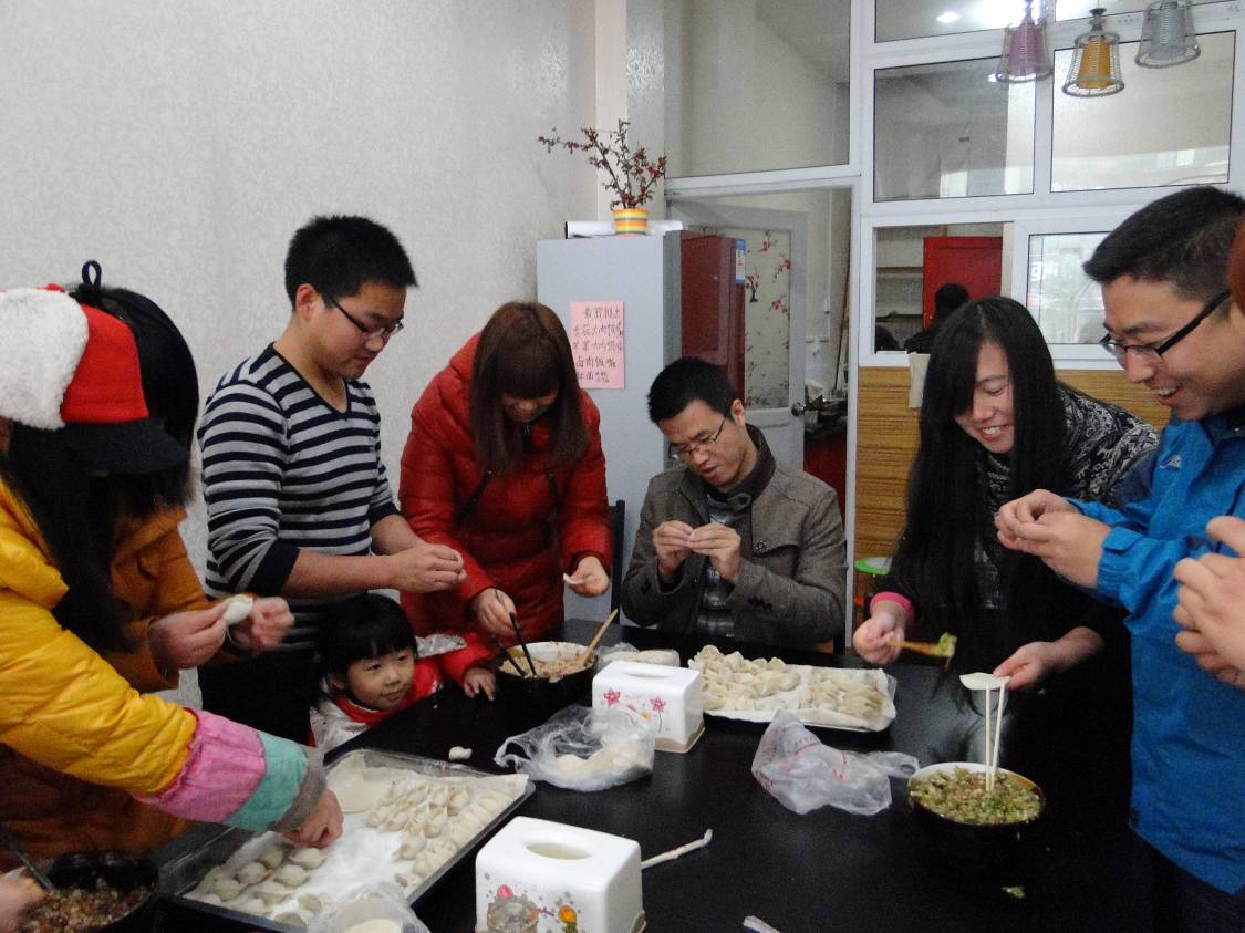 一到活動現(xiàn)場,大家便迫不及待地洗手圍坐在一起,緊張有序地展示著各自的包餃子絕活。大家兩兩一組分成幾個隊,開始比賽包餃子,搶速度、比外觀、賽質(zhì)量、拼協(xié)作,一邊包著一邊說笑著,整個活動現(xiàn)場充滿了節(jié)日的歡聲笑語,其樂融融,快樂與溫暖寫在了每個人臉上。不一會兒,一個個可愛的餃子放滿了盤子,原本樣式單一的餃子也在大家的妙手中瞬間變得花樣迭出、種類繁多,老鼠形、刺猬形、元寶形、包子形……應(yīng)有盡有。