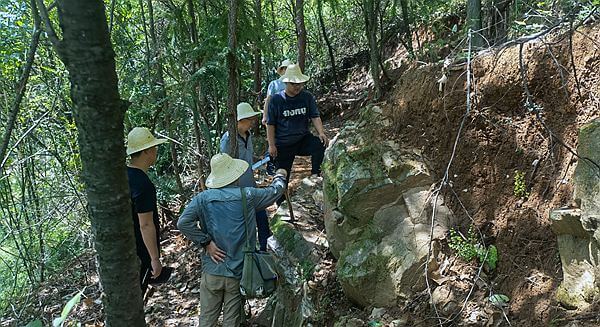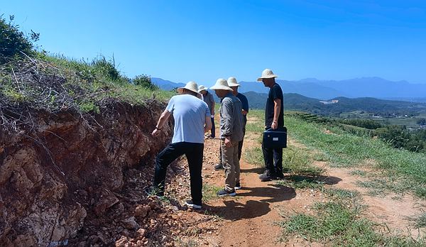 在野外施工現(xiàn)場,專家組認真檢查探槽、剝土等工程施工質(zhì)量及綠色勘查情況,現(xiàn)場就礦體的賦存狀態(tài)、控礦構造、礦化蝕變及下一步需要進一步查明的成礦因素等理論技術問題進行了深入討論和精心指導。