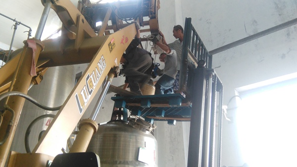 高溫季節(jié),車間內(nèi)的溫度要比室外高出2℃以上,而且由于工作環(huán)境相對封閉,呆在車間里面就像洗桑拿。在悶熱高溫環(huán)境下,職工們的汗珠順著臉頰不停地往下掉,每天的衣服都是濕了又干,干了又濕。大家卻依然堅守崗位,順利的將4個重達(dá)2噸的攪拌罐,安裝在操作平臺上,確保了天然谷公司的正常生產(chǎn)。